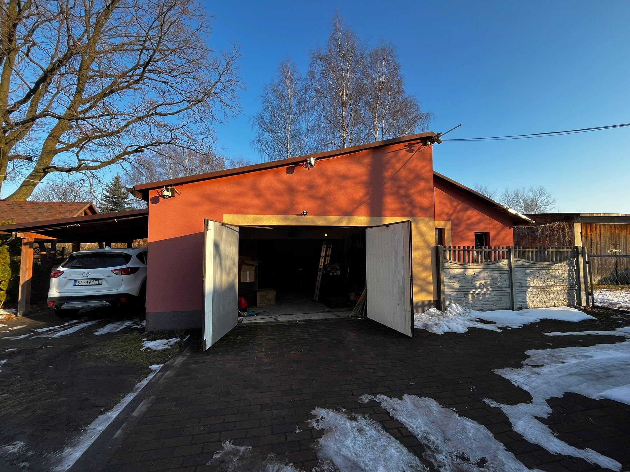 duży garaż o powierzchni około 50 m z bramą sterowaną pilotem